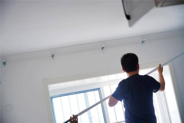 这里要说一下,因为装在卧室里,然后房顶又稍微的装修了一下,因此顶装不太现实。不过好在我知道有侧装码这东西,所以早早的下单大号的,等到师傅安装的是一看,确实很合适这次真的太庆幸了。剩下的就不用多说了,师傅轻车熟路,测量好具体打眼上螺丝一气呵成,然后卡上电机后大功告成了。当然,这些都是免费的,厂家负责一些的安装售后,毕竟这些都是技术活,一般人搞不定的。
