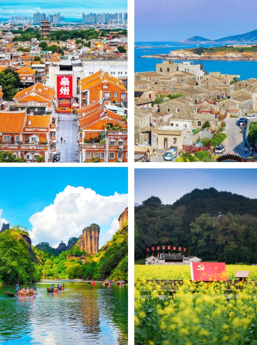 为给游客提供清晰出行指引,打造《来福建·很出“彩”》三大精品旅游线路,将闽式生活场景全景铺展:“观山阅海·蓝色滨海之旅”串联泉州、莆田、平潭、宁德四地,游客既能在泉州蟳埔体验非遗簪花围、在莆田湄洲岛感受湄洲女头饰的独特魅力,更能在泉州古城嗦一碗鲜美的面线糊、到南日岛品尝南日鲍,沉浸式感受八闽烟火;“碧水丹山·绿色康养之旅”聚焦南平、三明、漳州,在武夷山九曲溪竹筏漂流后品一杯岩茶回甘,到将乐龙栖山漫步水杉大道,于山水之间体悟“慢下来”的生活;“初心如磐·红色荣耀之旅”则串联吴石故居、古田会议会址等红色地标,引领游客在行走中解码八闽大地的红色记忆与精神传承。